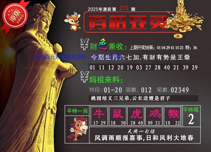 274期:天地两肖✦【地肖+猴牛】✦开:狗44中 |